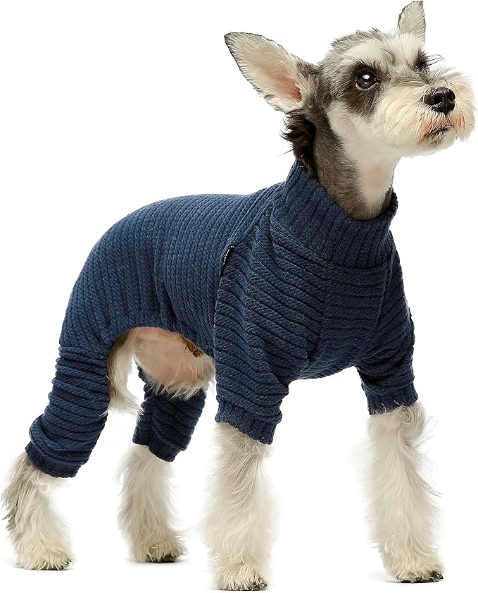 Fitwarm Turtleneck Knitted Dog Sweater Puppy Pajamas Thermal Doggie Winter Clothes Knitwear Pet Coats Cat Apparel Blue Small