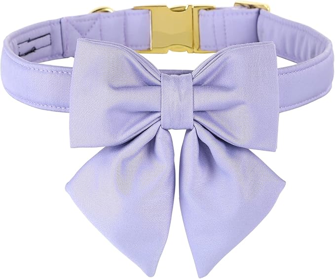 Maca Bates Violet Dog Collar with Cute Lavender Solid Sailor Bow Tie,Small Girl Boy Dogs,Girly Adjustbale Durable Breakaway Soft Collars with Bowtie for Female Male Puppy,Pet with Metal Buckle