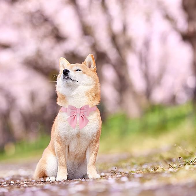 Maca Bates Cherry Pink Dog Collar with Cute Solid Sailor Bow Tie for Large Girl Boy Dogs,Girly Adjustbale Durable Breakaway Soft Collars with Bowtie for Female Male Puppy,Pet with Metal Buckle