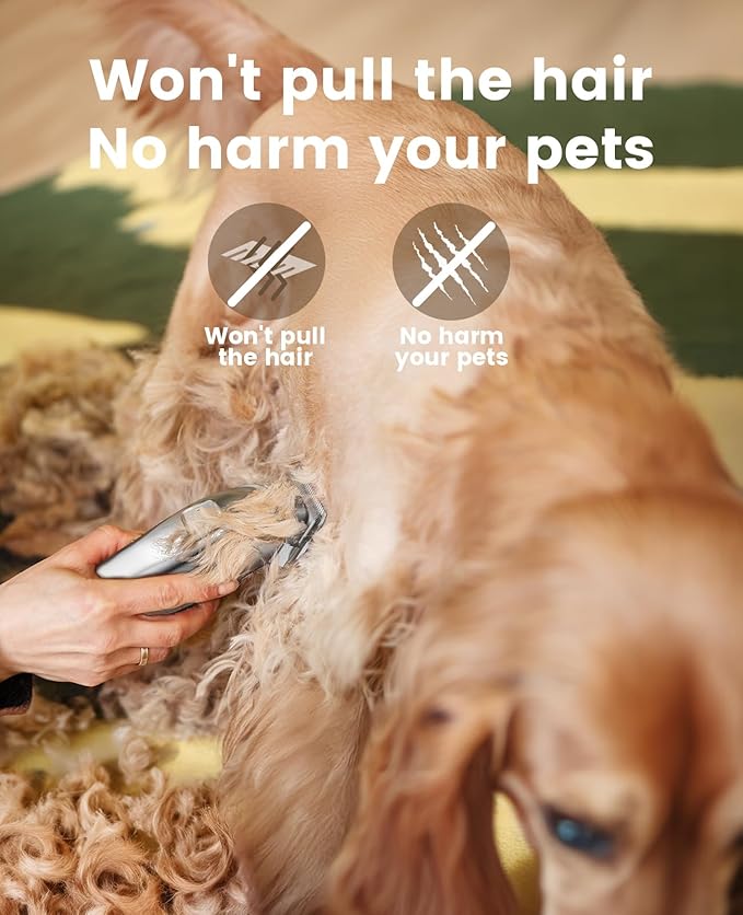 - Cordless Dog Clippers with Precision Metal Blades: The stainless steel blades are more durable than ceramics ones when grooming thick coats. You can trim your dog anywhere as these clippers are cordless, don’t need to find the outlets