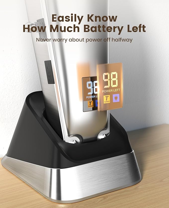 - Long Lasting Battery & LCD Indication: High Capacity Battery, which requires 3 hours charging time and last 5 hours. The LCD display would show how much power is left, helping you control the grooming work