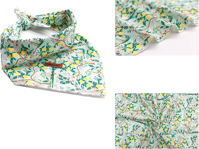 Lionheart glory Dog Bandana 1 Pack Washable Soft Cotton Lemon Flower Bibs Scarf, Adjustable Kerchief Square Dog Bandanas for Small Dogs