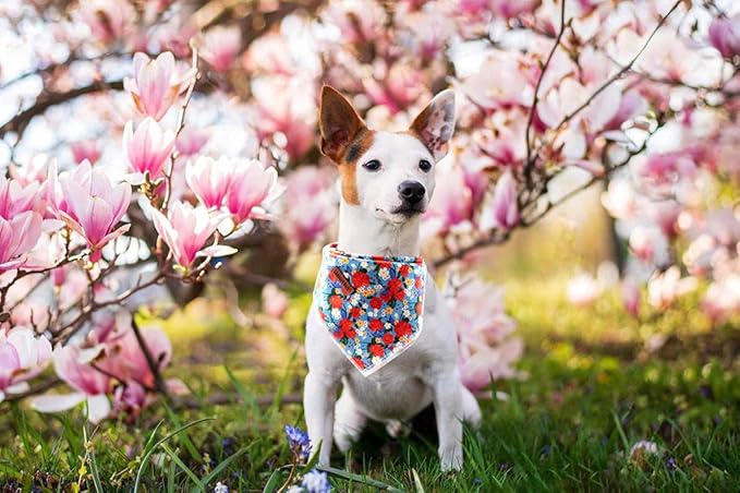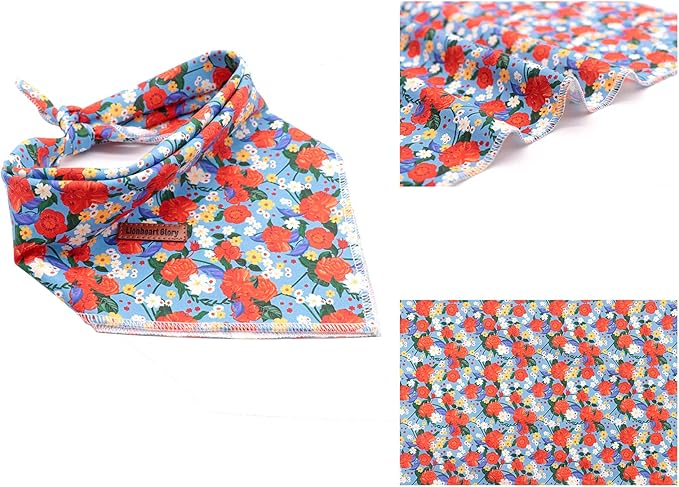 Lionheart glory Dog Bandana 1 Pack Washable Soft Cotton Floral Print Bibs Scarf, Adjustable Kerchief Square Dog Bandanas for Large Dogs