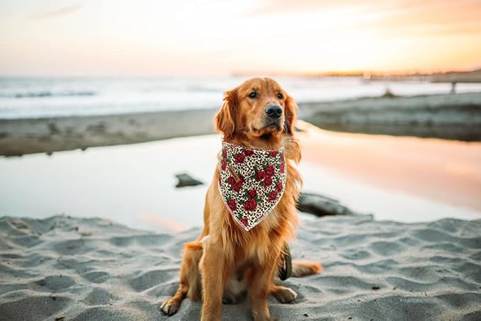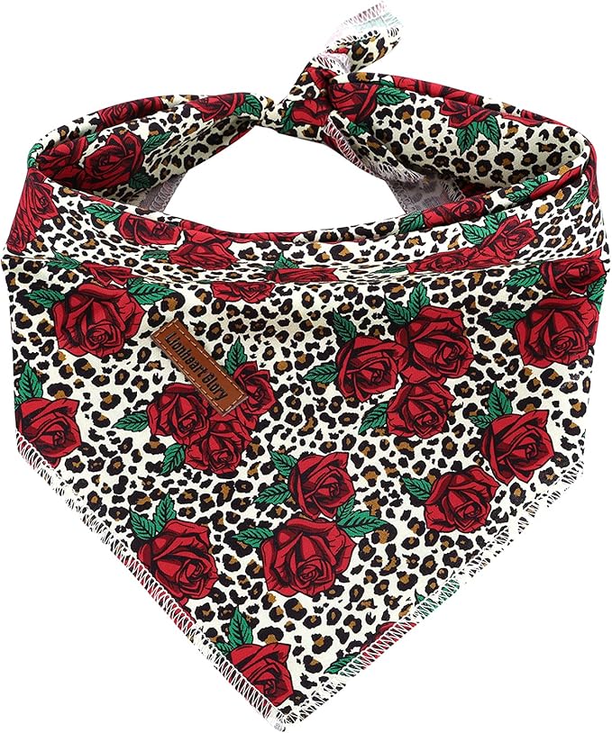 Lionheart glory Dog Bandana 1 Pack Washable Soft Cotton Rose Leopard Bibs Scarf, Adjustable Kerchief Square Dog Bandanas for Small Dogs