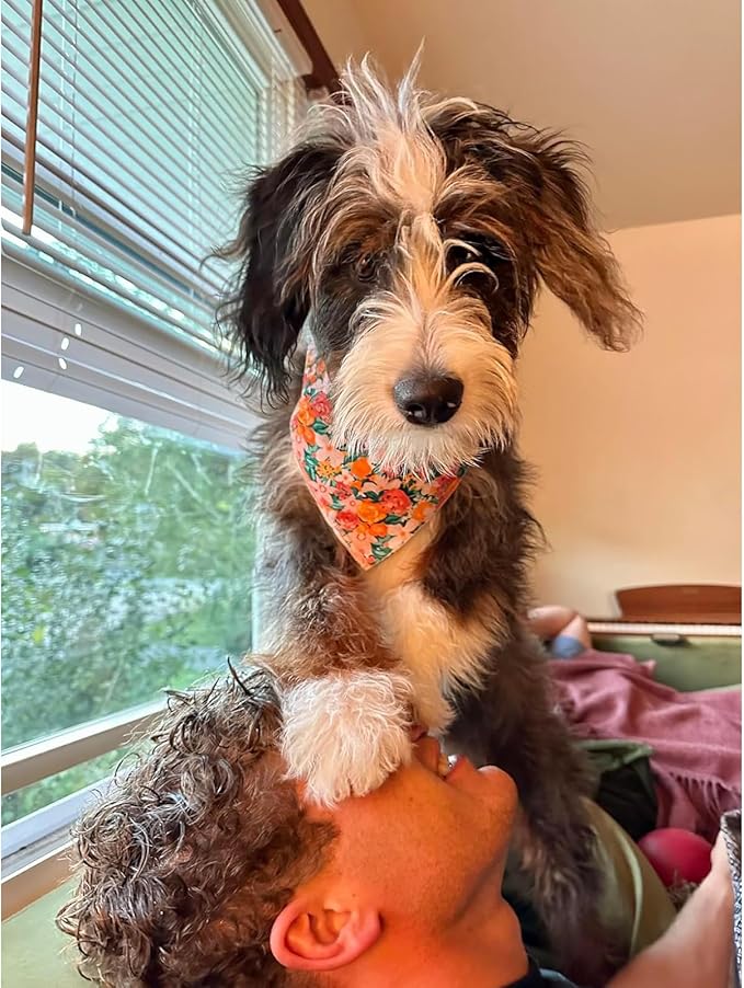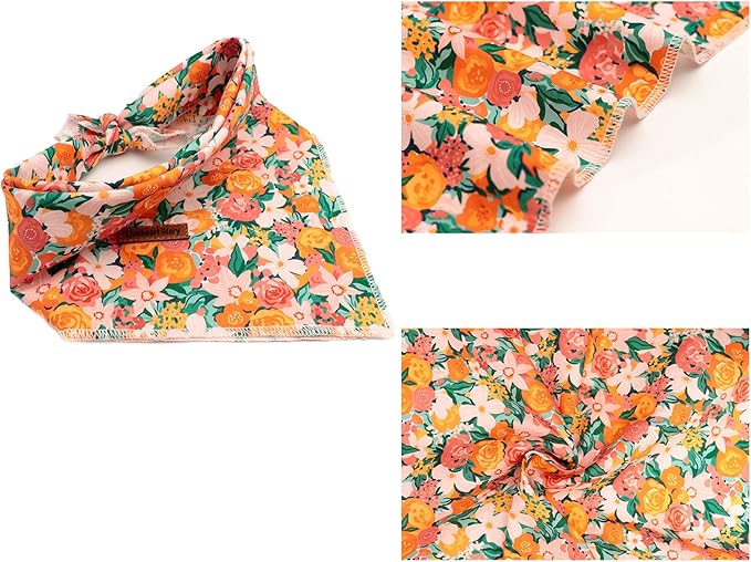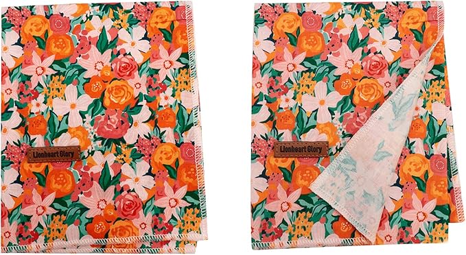 Lionheart glory Dog Bandana 1 Pack Washable Soft Cotton Flower Print Bibs Scarf, Adjustable Kerchief Square Dog Bandanas for Small Dogs