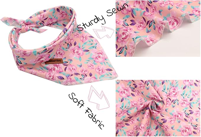 Lionheart glory Pink Dog Bandana 1 Pack Washable Soft Cotton Floral Bibs Scarf, Adjustable Kerchief Square Dog Bandanas for Large Dogs