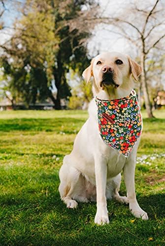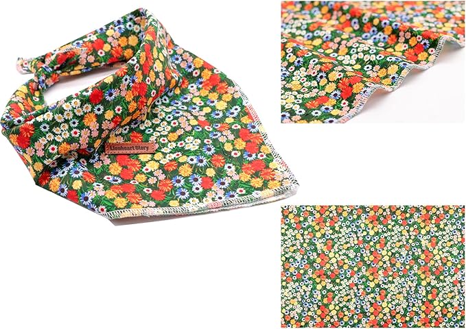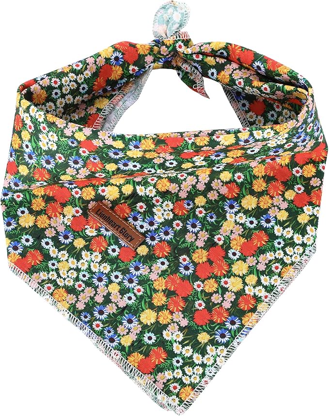 Lionheart glory Dog Bandana 1 Pack Washable Soft Cotton Daisy Print Bibs Scarf, Adjustable Kerchief Square Dog Bandanas for Small Dogs