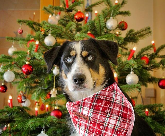 Lionheart glory Dog Bandana 1 Pack Washable Soft Cotton Christmas Plaid Bibs Scarf, Adjustable Kerchief Square Dog Bandanas for Large Dogs