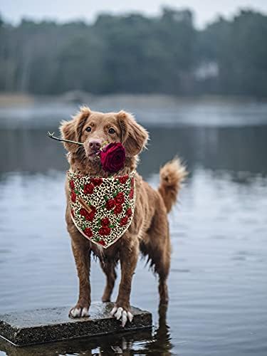 Lionheart glory Dog Bandana 1 Pack Washable Soft Cotton Rose Leopard Bibs Scarf, Adjustable Kerchief Square Dog Bandanas for Large Dogs