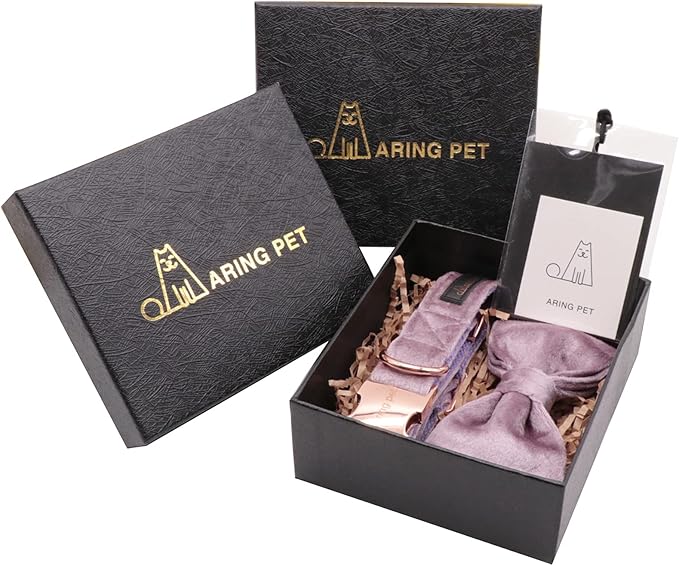 ARING PET Bowtie Dog Collar-Velvet Dog Collars with Removable Bowtie, Adjustable Bowtie Collar for Girl and Boy Dogs.
