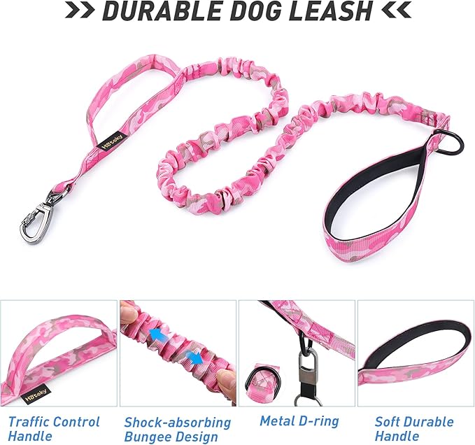 Hotsky Tactical Dog Collar and Leash Set, Heavy Duty Military Airtag Dog Collar with Handle and Metal Buckle for Training and Walking, with Airtag Holder and Two Patches (Pink Camo, L)