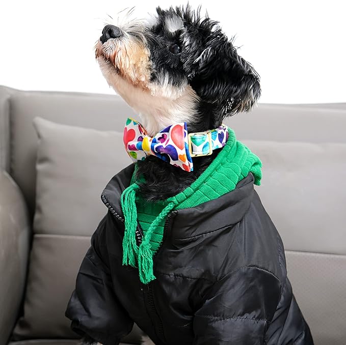 Lionet Paws Valentine's Day Dog Collar with Bowtie, Soft and Comfortable, Adjustable Collar for Medium Dogs, Neck 13.5-22 inches