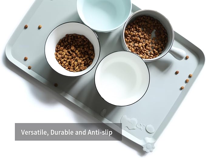 Hoki Found L Silicone Pet Feeding Mats with Higher Lips - Non Slip Pet Dog Cat Bowl Mats - Waterproof - Suitable for Carpet - Battleship