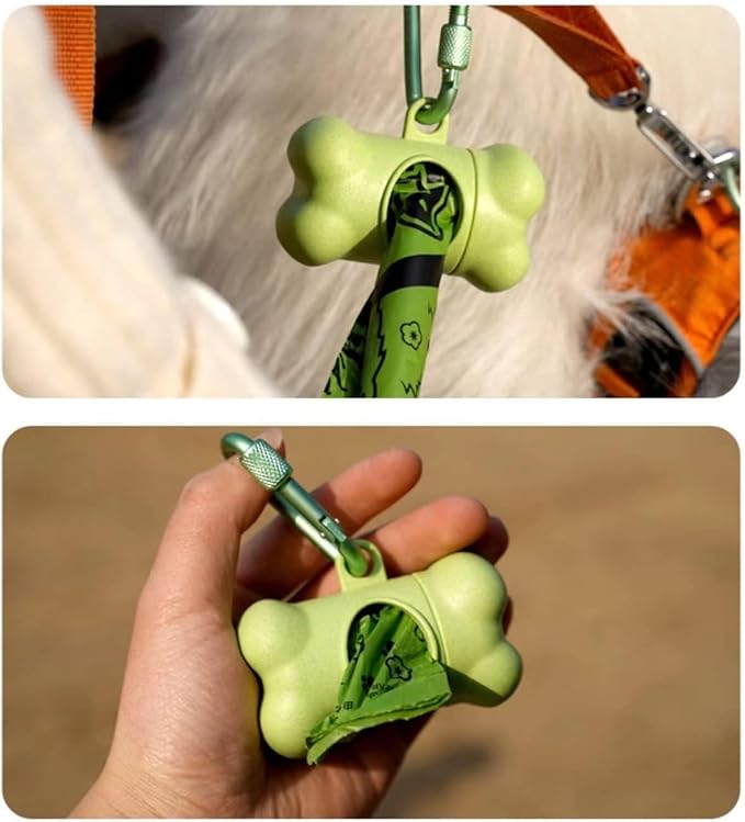 Dog Poop Pickup Bags Holder Dispenser with Leak-Proof Scented Doggy Waste Bags and Carabiner with Safety Lock Plus Hook and Loop Fastener Never Loose on Leash Lead Again (1 Holder 195 Bags, Green)