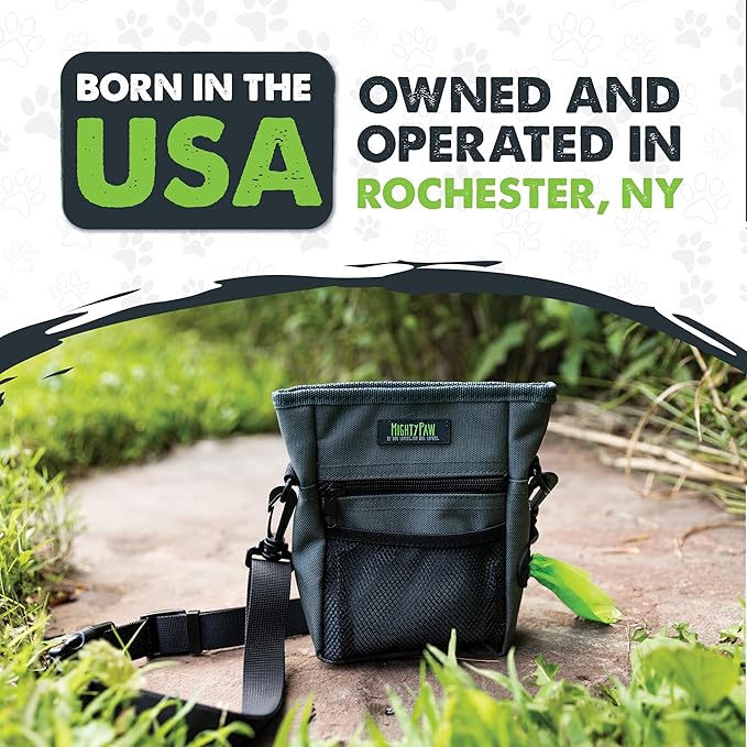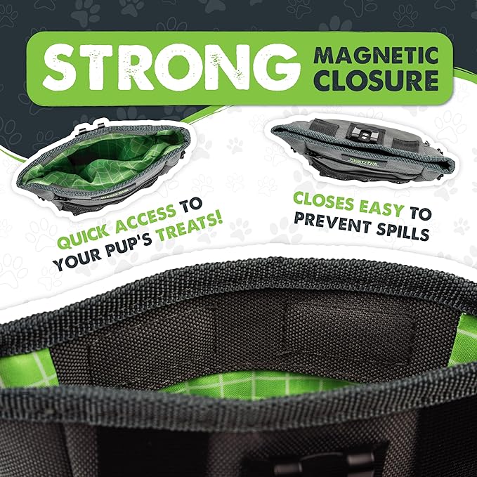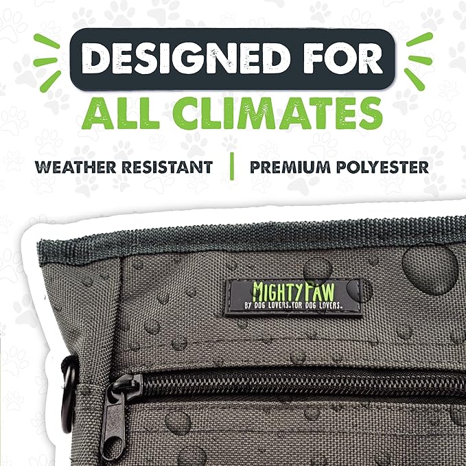 - Easy Access, No-Spill Magentic Clasp: The Mighty Paw Treat Pouch 2.0 features two strong magnet clasp to eliminate spills and make it easy to access your dogs treats! Our dog treat holder for leash makes training a walk in the park!
