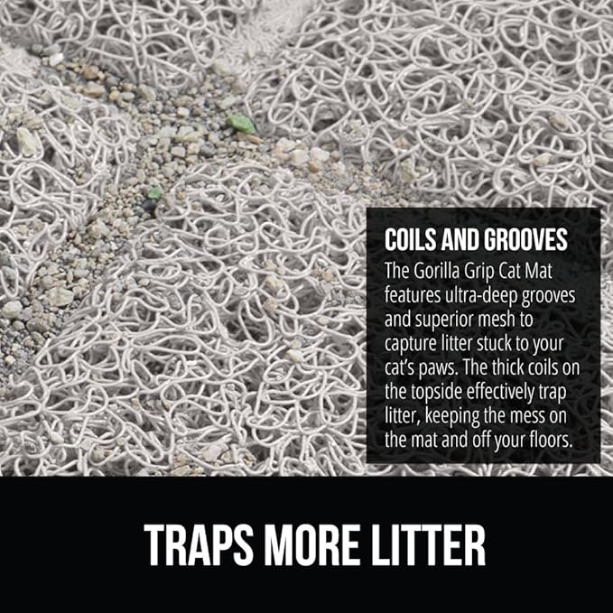 GORILLA GRIP Cat Litter Box Mat, 40x28, Water Resistant, US Designed Kitty Litter Trapping Mats, Easy to Clean, Scatter Control, Less Mess and Clean Floors, Kitten Supplies for Indoor Cats, Light Gray