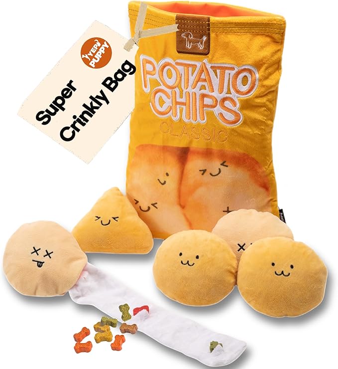 YEPPUPPY Sniffing Play for Mental Stimulation& Hide & Seek Plush Treat Dispenser – Boredom-Busting Interactive Burrow Dog Toy – Snuffle Puzzle Enrichment Gamewith Crinkle Chip Bag Design
