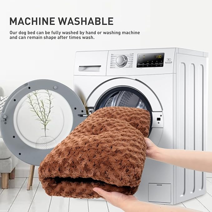 KSIIA Washable Dog Bed Deluxe Plush Dog Crate Beds Comfy Kennel Pad Anti-Slip Pet Sleeping Mat for Large, Jumbo, Medium, Small Dogs Breeds, 35" x 23", Brown