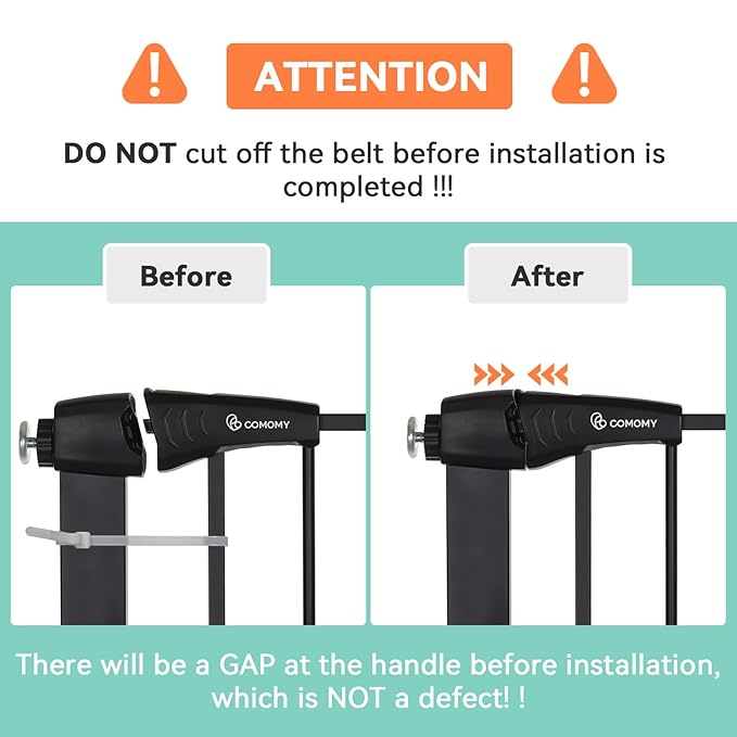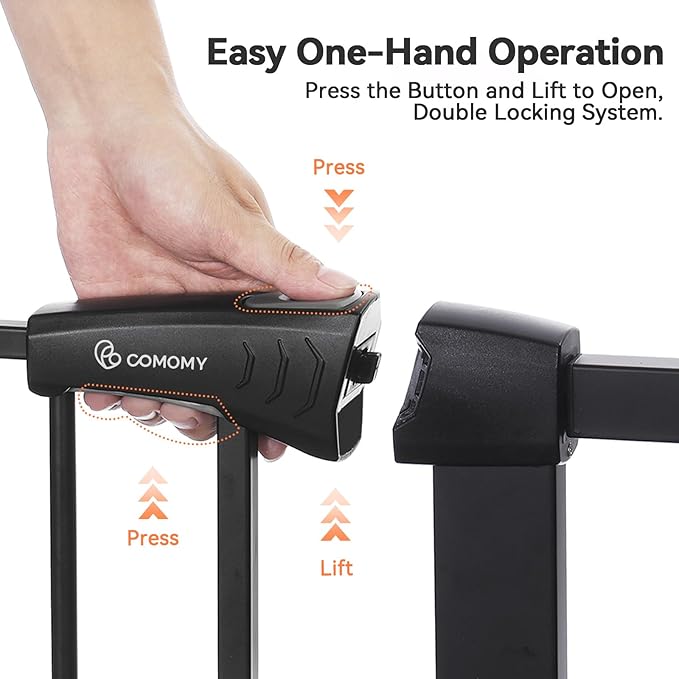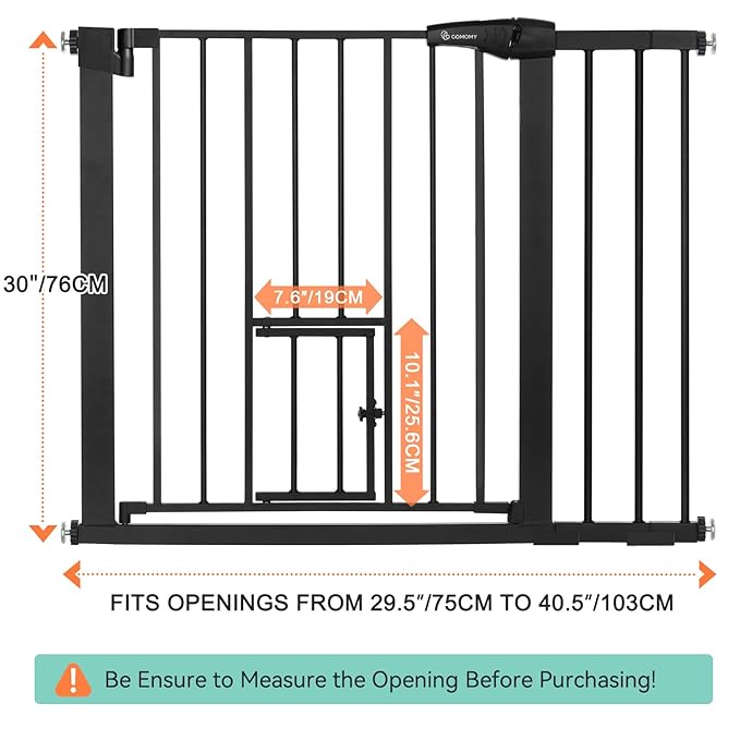 COMOMY Auto Close Baby Gate with Cat Door, 29.5"-40.5" Extra Wide Dog Gate for House Doorways Stairs, Pressure Mounted Easy Walk Thru Pet Gate, Includes 4 Wall Cups and 2 Extension Pieces, Black