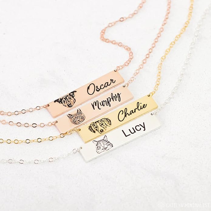 LONAGO 925 Sterling Silver Custom Dog Cat Portrait Photo Necklace Personalized Pet Engraved Picture Pendant Memorial Gift Name Jewelry for Women Mom