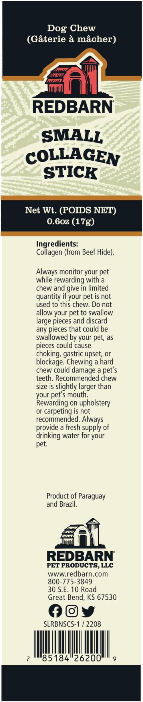 Redbarn Pet Products Natural Small Collagen Sticks for Dogs - Long Lasting Alternative to Traditional Rawhide & Bully - Supports Joint, Skin, & Coat Health - Case of 25