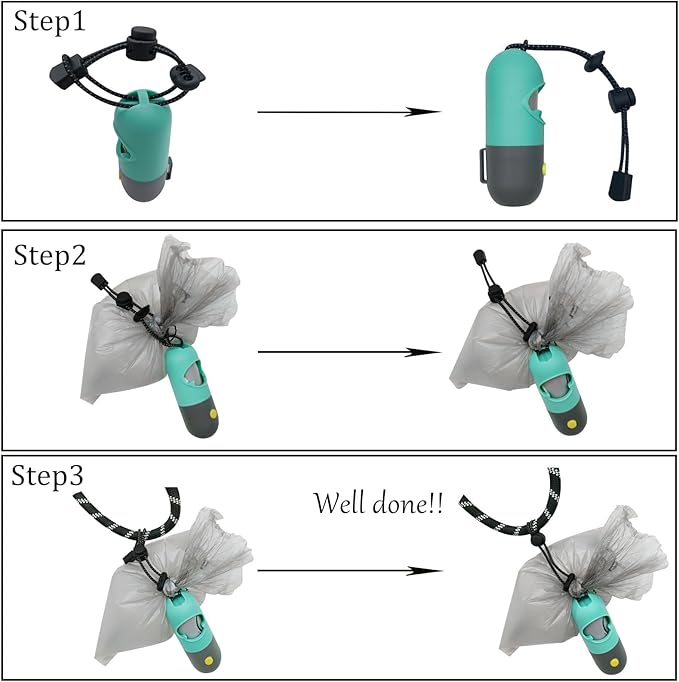 - 3 ACCESSORIES TO CHOOSE: 1 elastic rope with 2 buckles,1 metal carabiner,and 1 hook and loop fastener.You can choose any one you like to meet personal needs.The elastic rope can be used to attach the dispenser to a dog walking leash,as well as to clip used poop bags.No need to hold it in your hands until you find the trash can