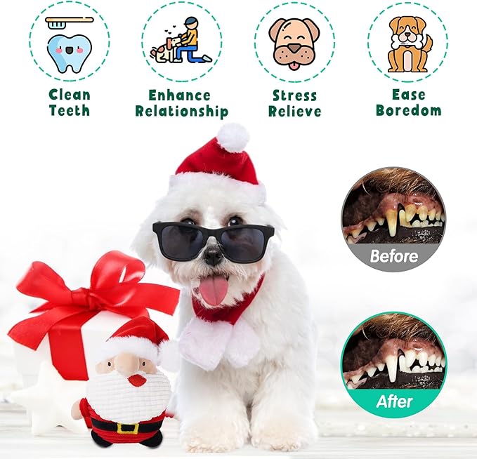 Zeaxuie Dog Chew Toys for Xmas - 9 Pack Santa Puppy Toys for Teething Small Dogs with Rope Toys, Treat Ball and Squeaky Dog Toys