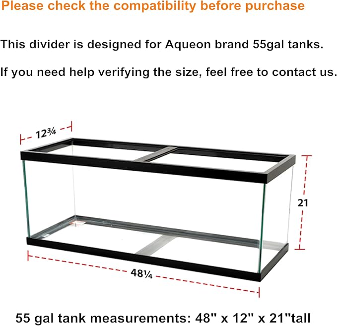 Acrylic Aquarium Divider Kit 5.5/10 / 20L / 20H / 29 / 40B / 55/75 / 125gal Fish Tank with Suction Cups