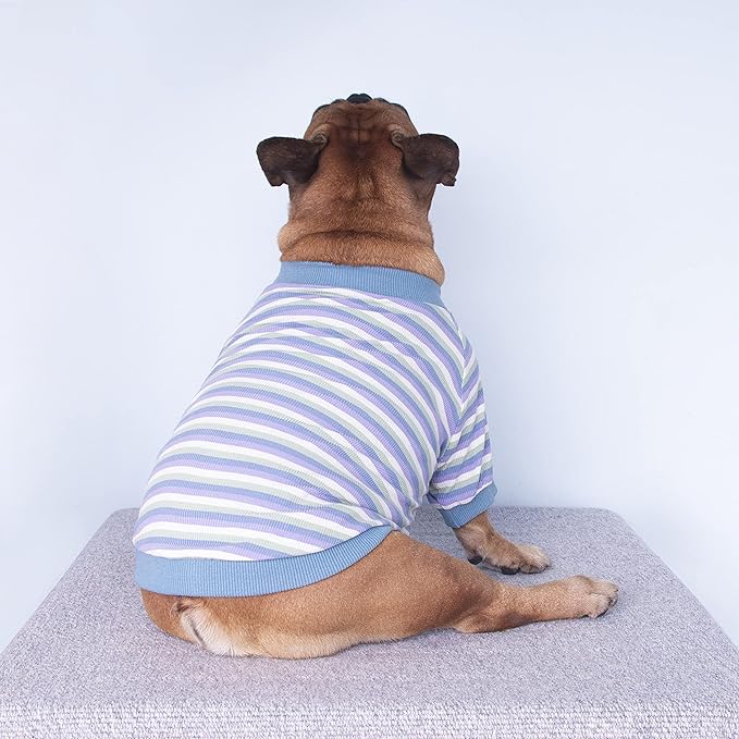 iChoue English Bulldog High Stretchy Breathable Summer Cooling T Shirts Vest Clothes for Medium Dogs Large French Frenchie Pug English Pitbull Boston Terrier Blue Stripe - XLarge