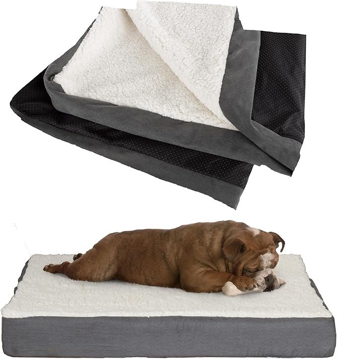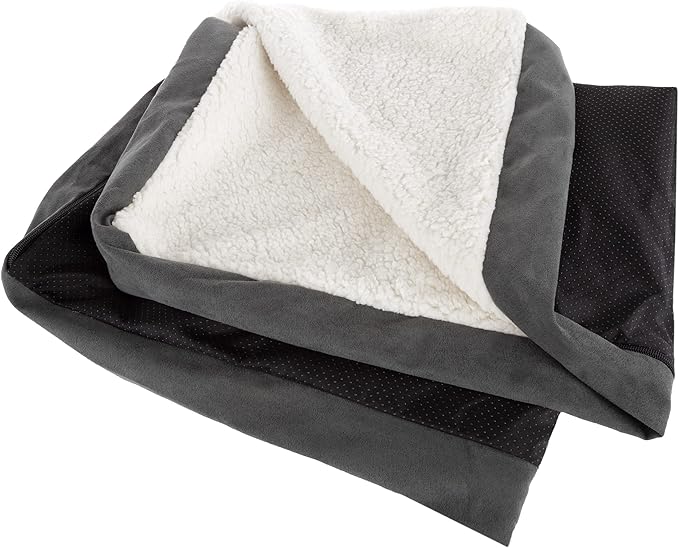Dog Bed Replacement Cover ? Pet Duvet with Sherpa Top, Non-Slip Bottom, Gray Micro Suede -Dog Bed Washable Removable Cover by PETMAKER (Medium)