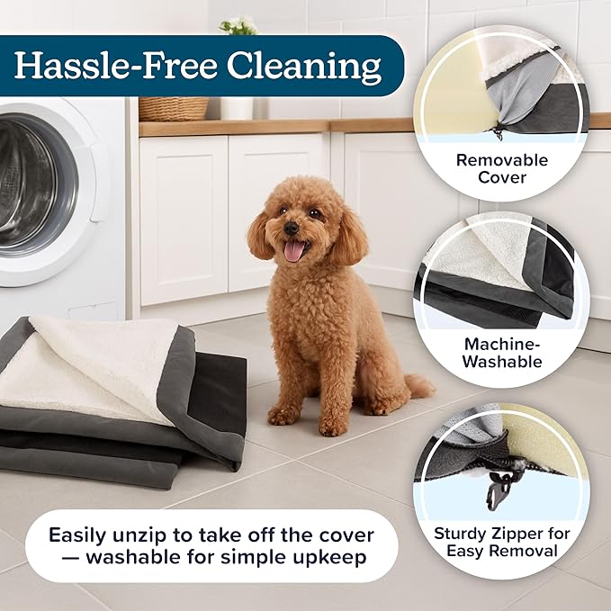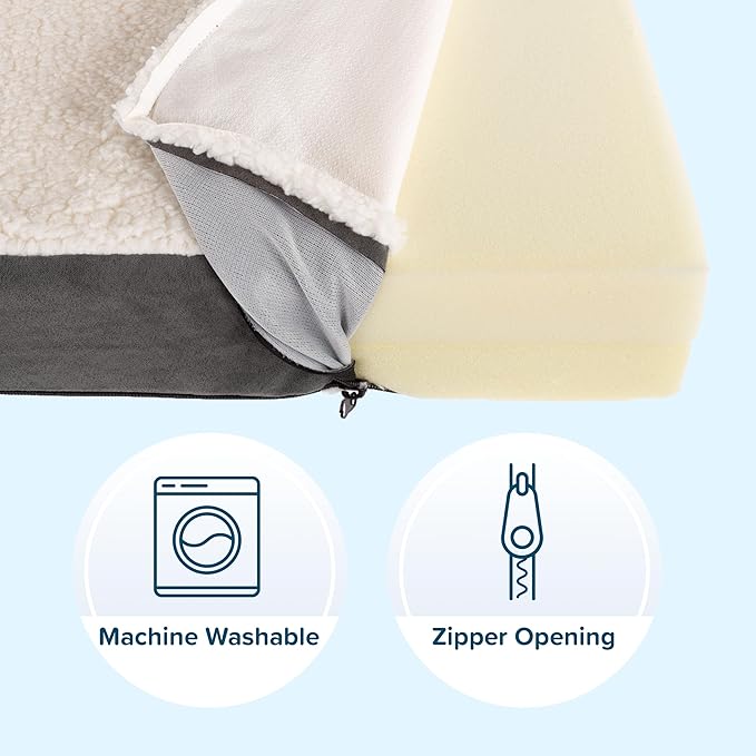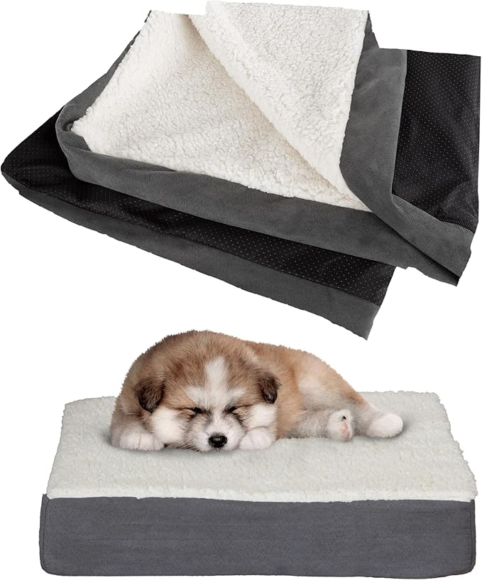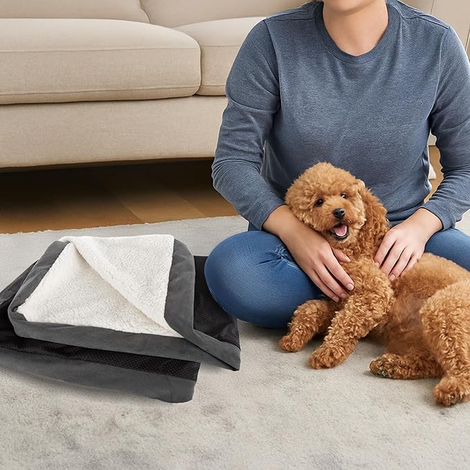Dog Bed Replacement Cover ? Pet Duvet with Sherpa Top and Non-Slip Bottom, Gray Micro Suede -Dog Bed Washable Removable Cover by PETMAKER (Small)
