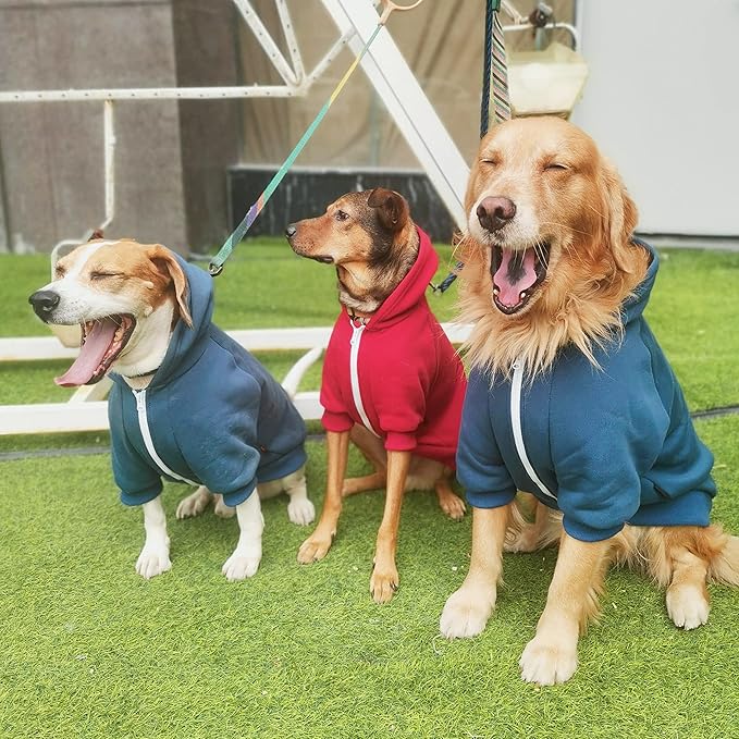 Large Dog Zipper Hoodies Clothes Zip Up Sweaters for Labrador Dobermann, Red, 5X-Large