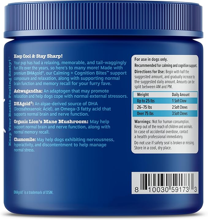 Zesty Paws Senior Advanced Calming & Cognition Soft Chews for Dogs - Supplements for Dog Brain Health & Nervous System Support + Calming & Relaxation -with Ashwagandha, DHA & Melatonin