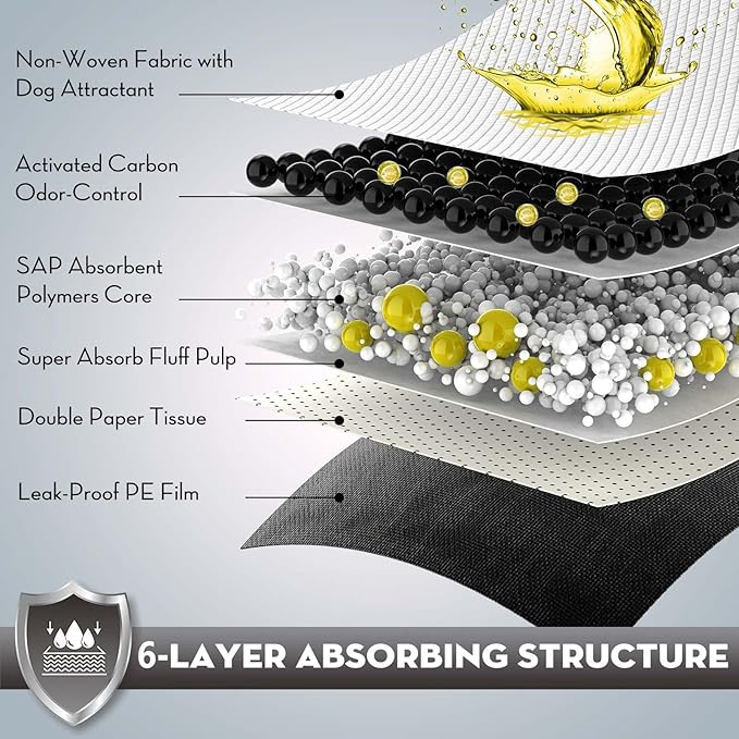 CROCI Charcoal Puppy Pads 23"x24" Standard Size, Odor-Control Carbon Dog Training Pads Absorbs Up to 4 Cups of Liquid, 6-Layer Leak-Proof & Quick Dry Pee Pads for Dogs, Disposable (100 Counts)