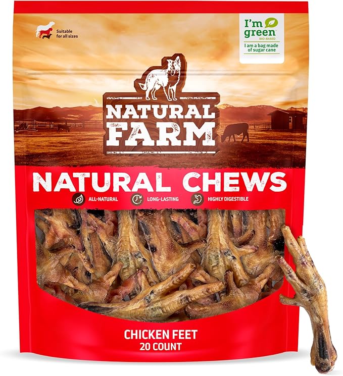 Natural Farm Nail-Free Chicken Feet Dog Treats (20 Pack), 100% Free-Range Air Dried Chicken Feet, No Nails, Fully Digestible, High Protein, Low Calorie, Joint Support, Single Ingredient
