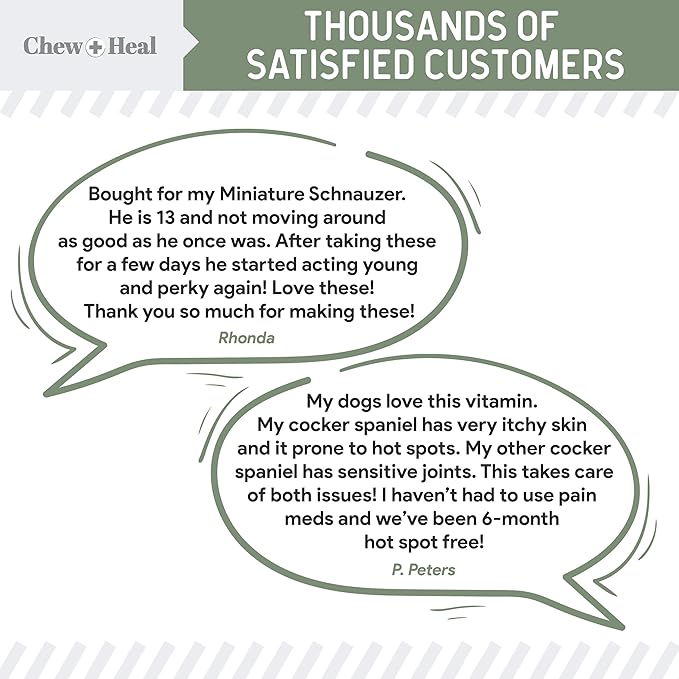 - Chew + Heal's chewable dog multivitamin has all the vital minerals and essentials dogs need daily to improve health of joints, skin, digestion, and more