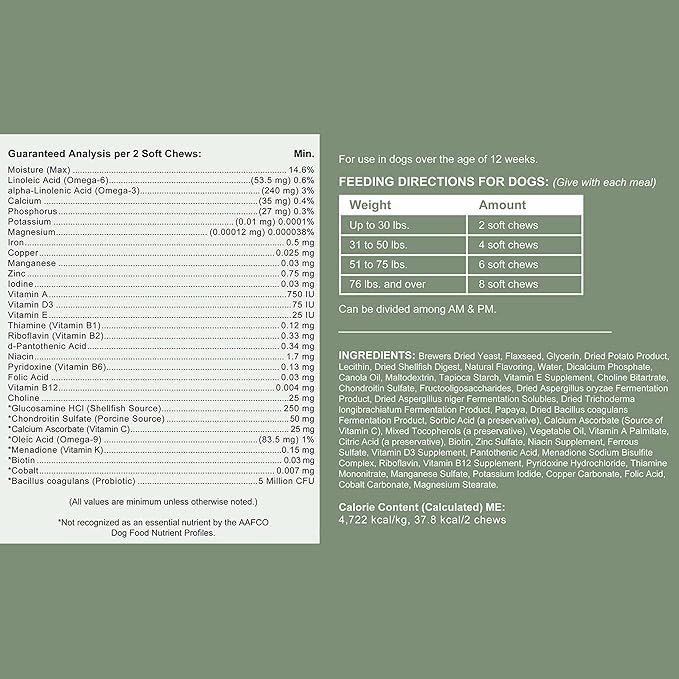 - Glucosamine and chondroitin help boost hip and joint health, as well as muscles, cartilage, and bones. Great for younger and senior pets