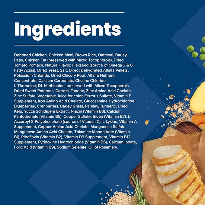 - REAL MEAT FIRST: Blue Buffalo foods always feature real meat as the first ingredient; High-quality protein from real chicken helps your dog build and maintain healthy muscles; Plus they contain wholesome whole grains, garden veggies and fruit