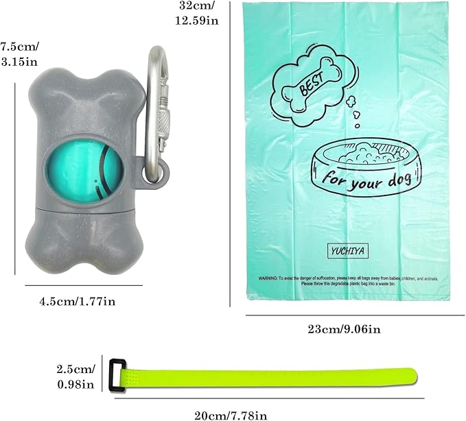 Dog Poop Pickup Bags Holder Dispenser with Standard-Sized Leak-Proof Scented Doggy Waste Bags and Carabiner with Safety Lock&Fastener Never Loose on Leash Lead Again (1 Holder 15 Bags, Grey)