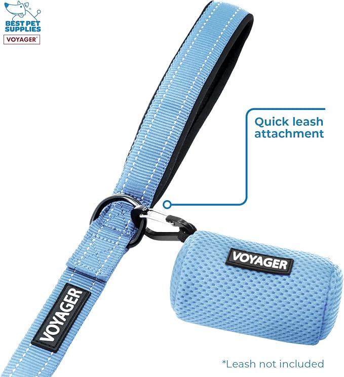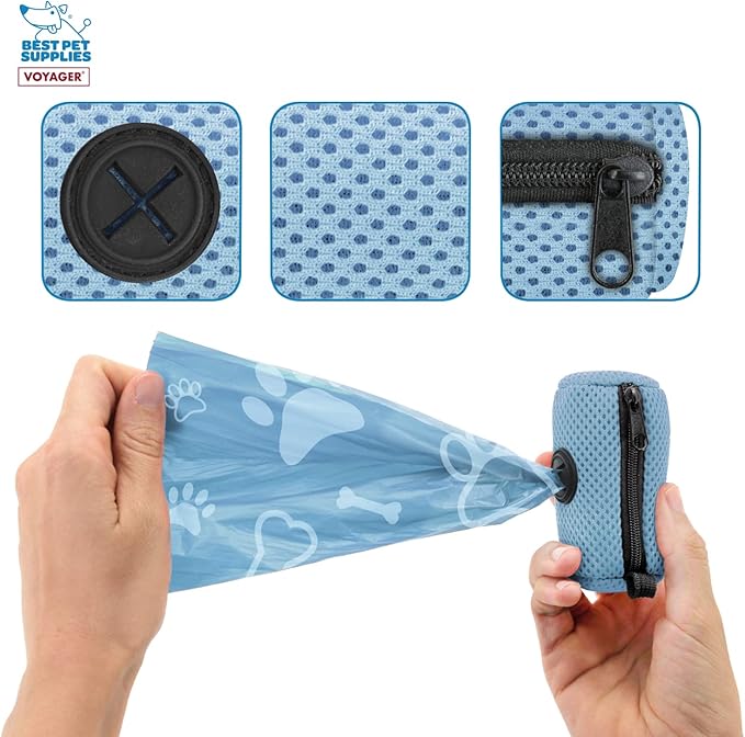Best Pet Supplies Dog Poop Bag Holder Leash Attachment with 15 Bags, Baby Blue, Reusable Mesh Dispenser Pouch for Travel, Walking, Park, and Outdoor Use, Soft and Durable with Clip-On