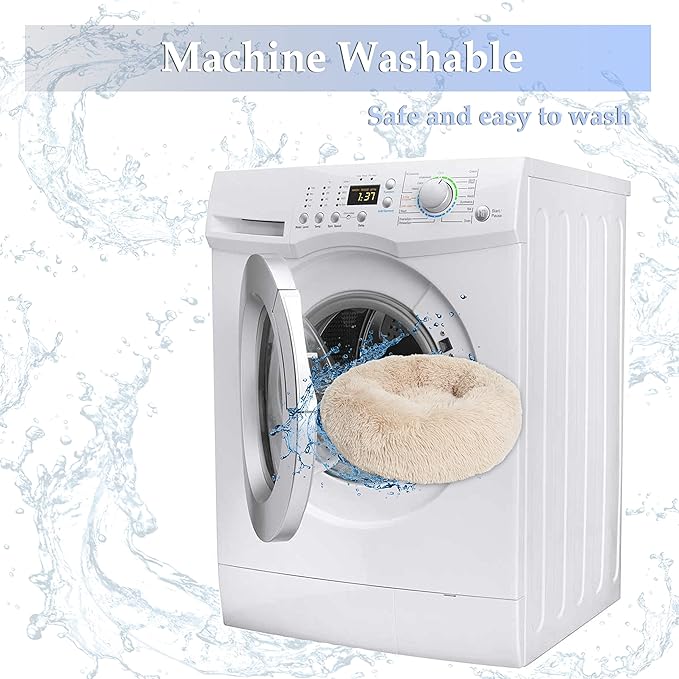 nononfish Puppy Bed for Small Dogs Washable Calming Cat Beds for Indoor Cats Anti-Slip Round Fluffy Plush Faux Fur fits up to 25 lbs Pets,23 inches Beige