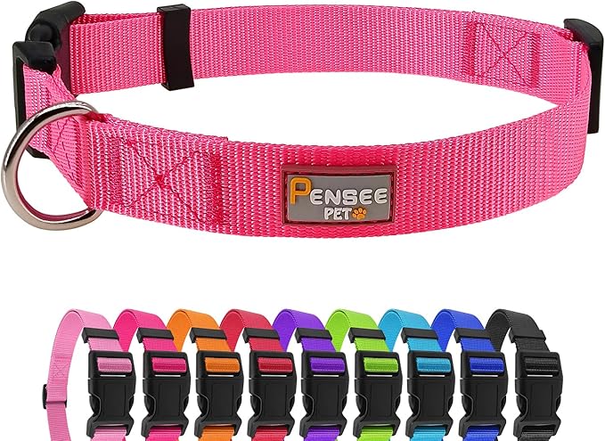 Dog Collar Hot Pink Basic Dog Collars with Breathable Quick Release Nylon Pet Collar for Puppy Small Medium Large Dogs Girl