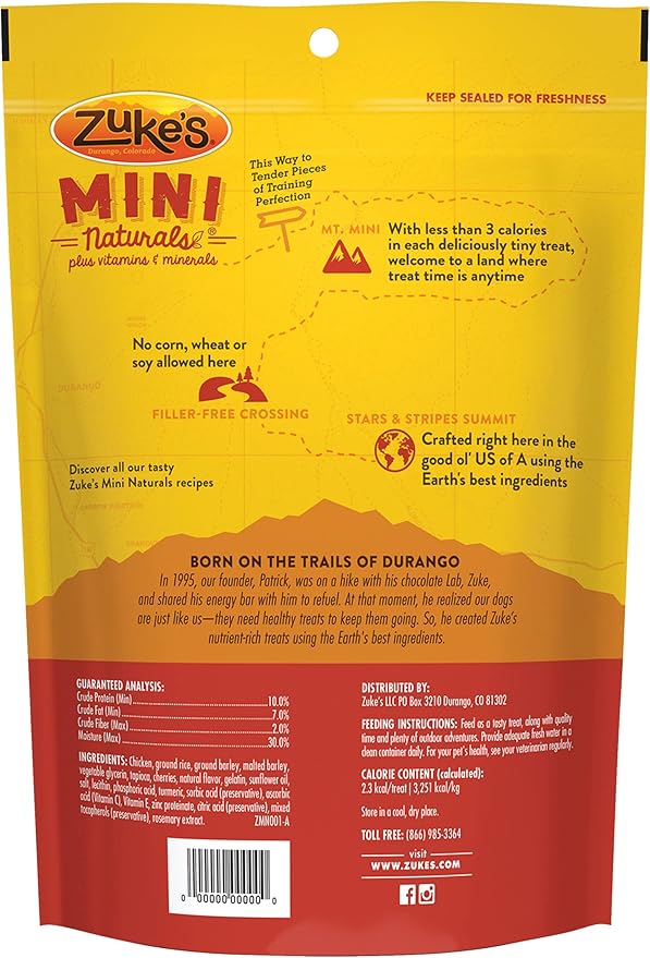 About This Zuke's Mini Naturals Dog Training Treats Chicken Recipe, Soft Dog Treats Wholesome, tender natural dog treats for all... Read more