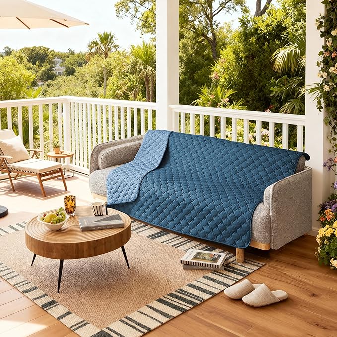 gogobunny 100% Double-Sided Waterproof Dog Bed Cover Pet Blanket Sofa Couch Furniture Protector for Puppy Large Dog Cat, Reversible (52x82 Inch (Pack of 1), Dark Blue/Light Blue)