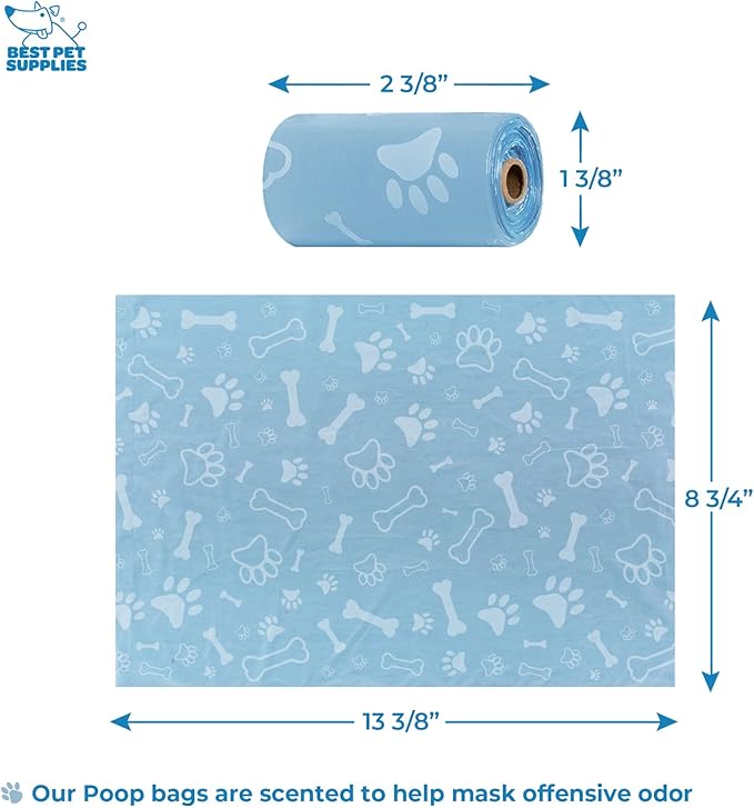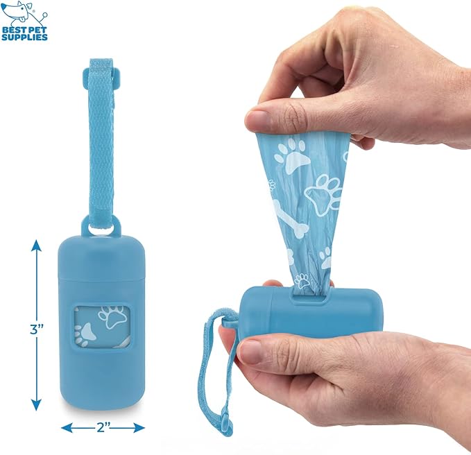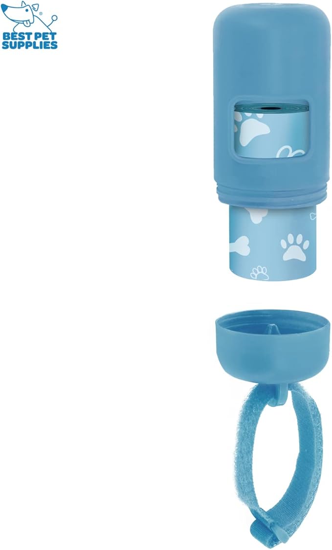Best Pet Supplies Dog Poop Bag Holder Leash Attachment with 30 Bags Reusable Dispenser for Travel, Walking, Park, and Outdoor Use, Durable with Clip-On - Baby Blue, Pack of 2