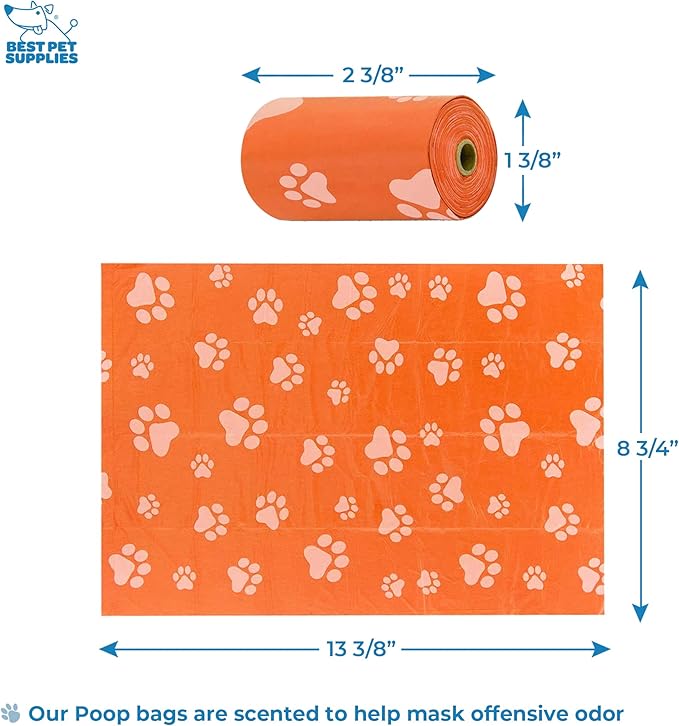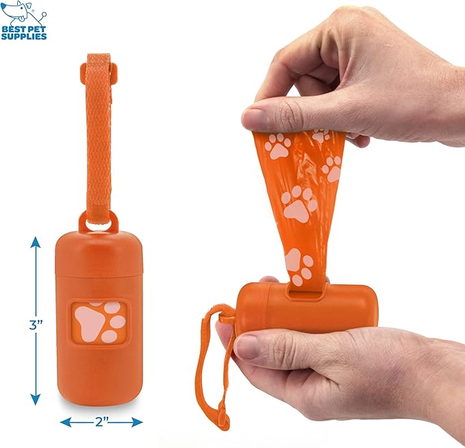 Best Pet Supplies Dog Poop Bag Holder Leash Attachment with 30 Bags, Reusable Dispenser for Travel, Walking, Park, and Outdoor Use, Durable with Clip-On - Orange, Pack of 2