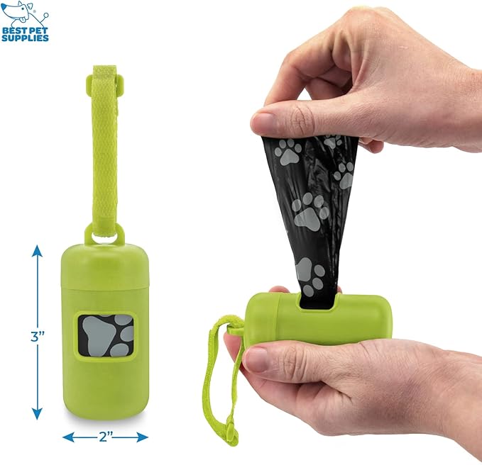 Best Pet Supplies Dog Poop Bag Holder Leash Attachment with 30 Bags, Reusable Dispenser for Travel, Walking, Park, and Outdoor Use, Durable with Clip-On - Lime Green, Pack of 2