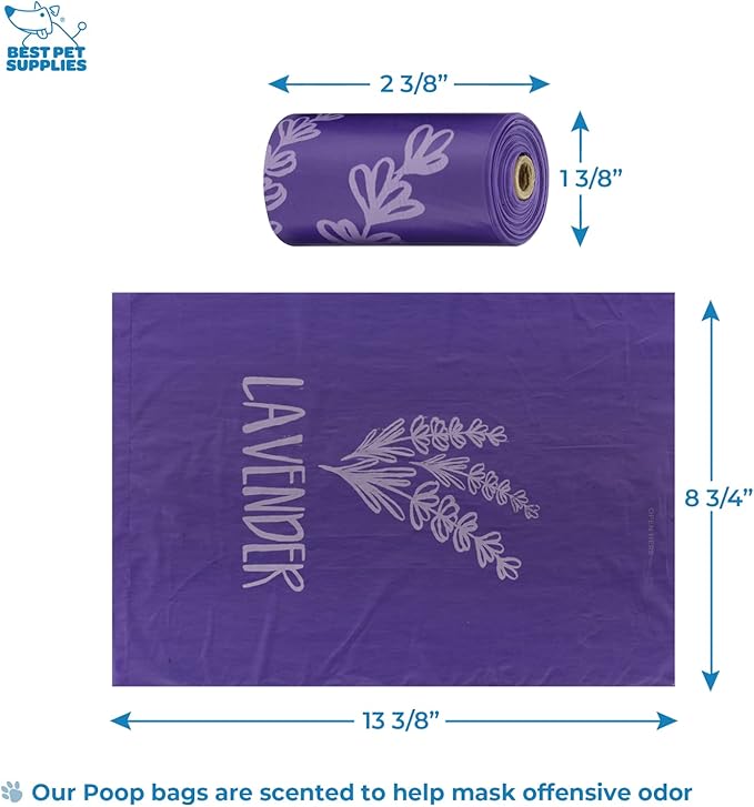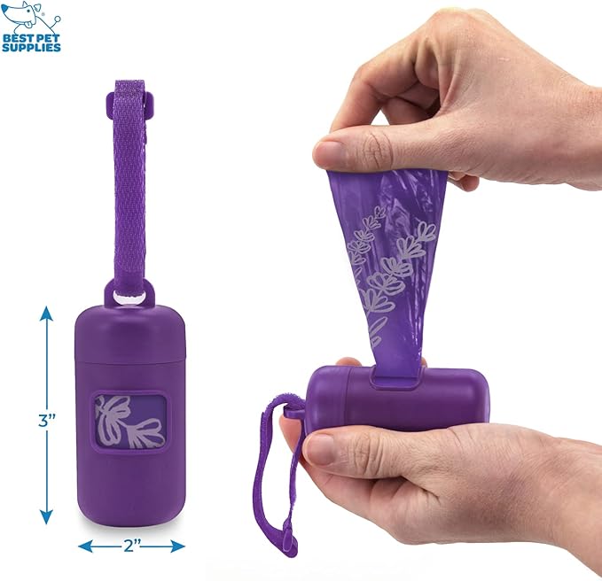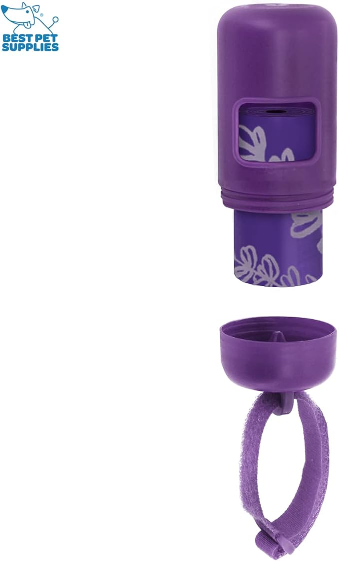 Best Pet Supplies Dog Poop Bag Holder Leash Attachment with 30 Bags, Reusable Dispenser for Travel, Walking, Park, and Outdoor Use, Durable with Clip-On - Purple, Pack of 2