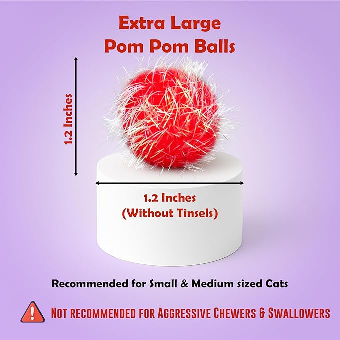 30 Pieces 1.2 inches Sparkle Pom Pom Balls for Cat - Interactive Glitter Balls, Multicolor, Best as Kitten Play Toys