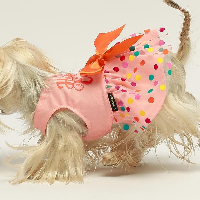 Fitwarm Happy Easter Day Dog Dress 100% Cotton Girl Dog Clothes Easter Bunny Dogs Dresses Pet Apparel Doggie Tutu with Bowknot Cat Clothing Puppy Dresses Doggy Costume Attire Orange X-Small